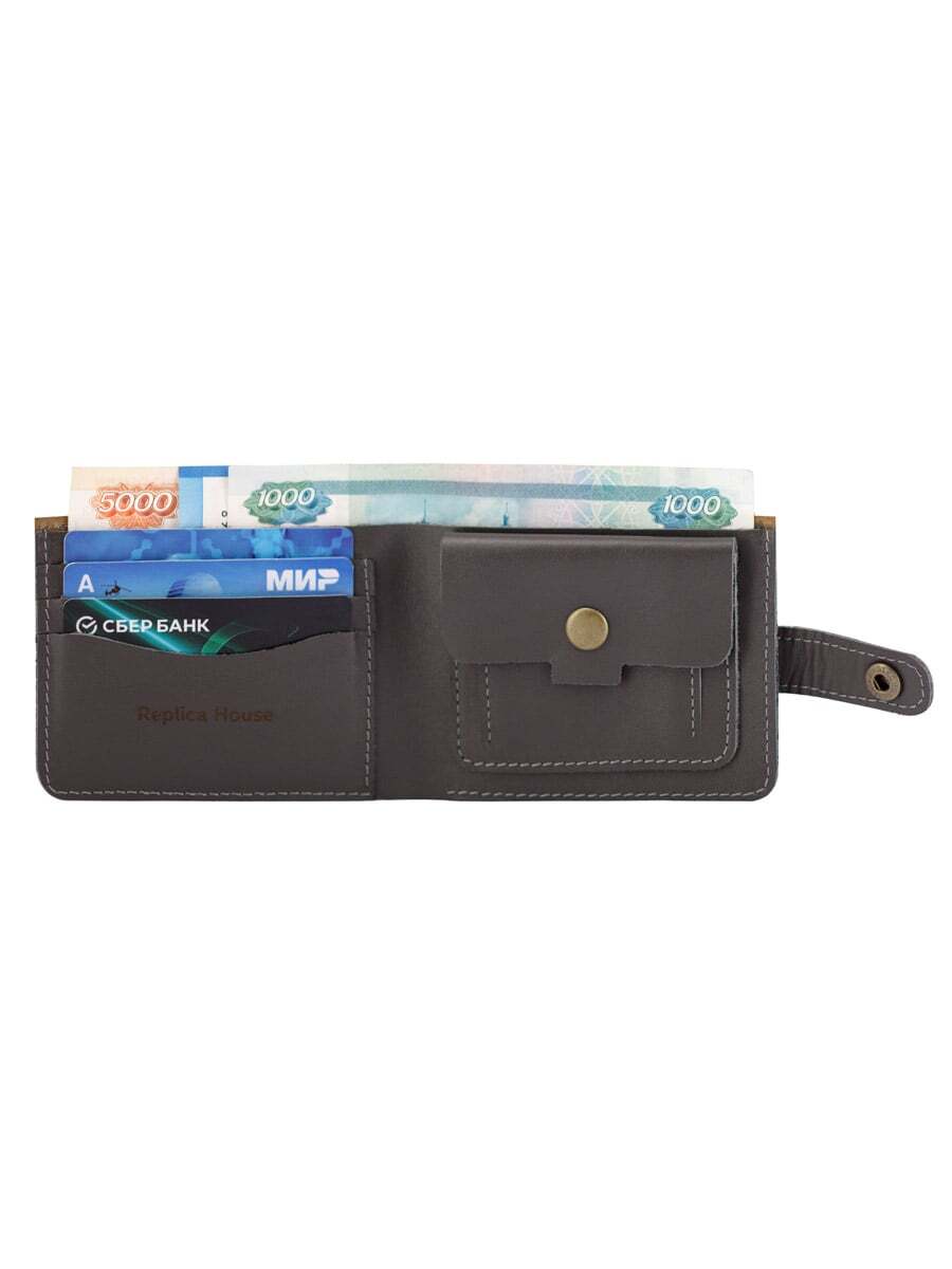 Внутри портмоне предусмотрены отделение для банкнот, отдельный карман для мелочи и секция для пластиковых карт. Детально рассмотреть наполнение можете на представленных фото.