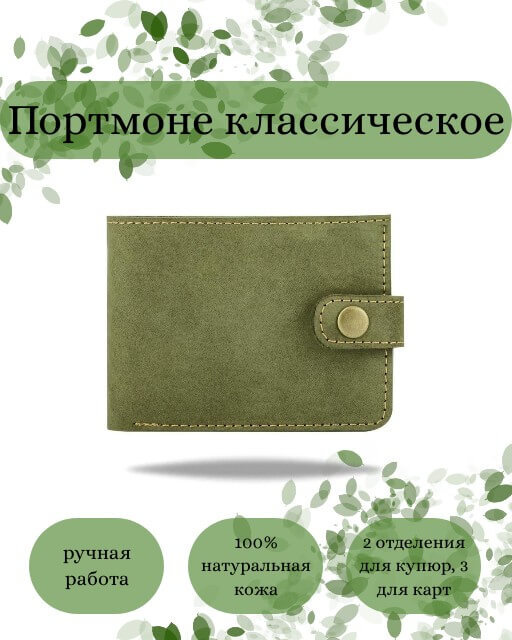 Размер портмоне в сложенном виде 12х8,5х1,5 см., в развернутом 25,5х8,5 см.