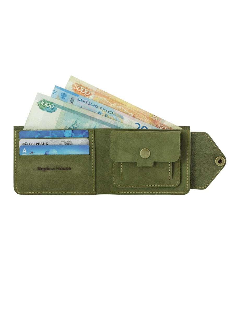 Внутри портмоне предусмотрены отделение для банкнот, отдельный карман для мелочи и секция для пластиковых карт. Детально рассмотреть наполнение можете на представленных фото.