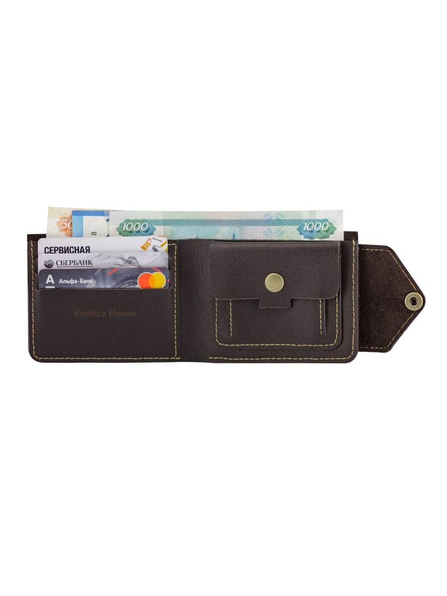 Внутри портмоне предусмотрены отделение для банкнот, отдельный карман для мелочи и секция для пластиковых карт. Детально рассмотреть наполнение можете на представленных фото.
