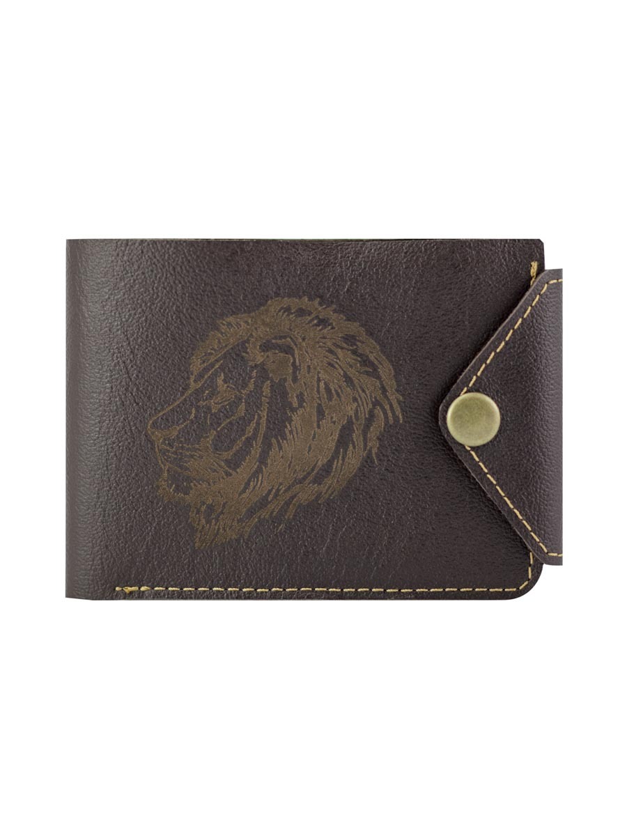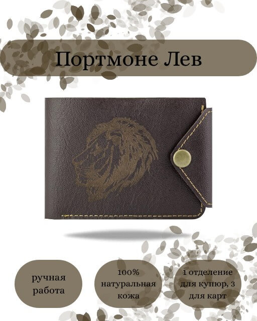 Выполнено из натуральной бычьей кожи с гравировкой в виде стилизованного изображения головы льва.