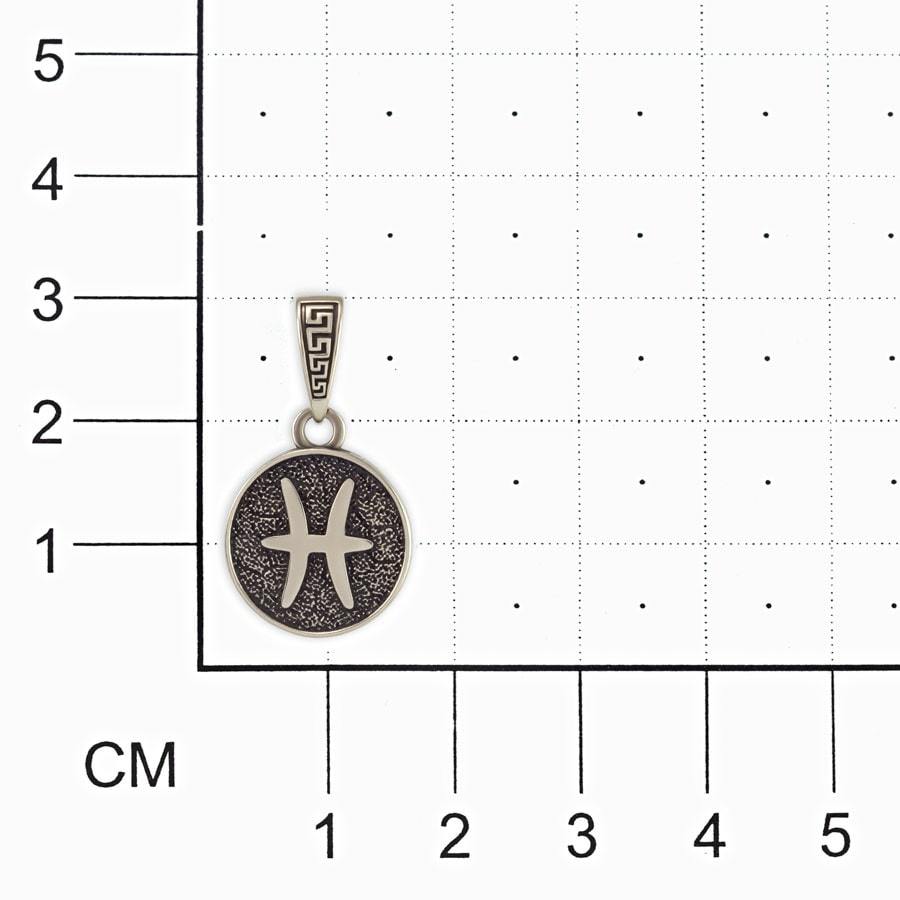На подвеске, изготовленной из ювелирной бронзы или мельхиора, изображен символ Рыб - двенадцатого знака зодиака. Это мифические Афродита и Эрот, спасшиеся от змея Тифона в глубинах реки, превратившись в ее чешуйчатых обитателей.