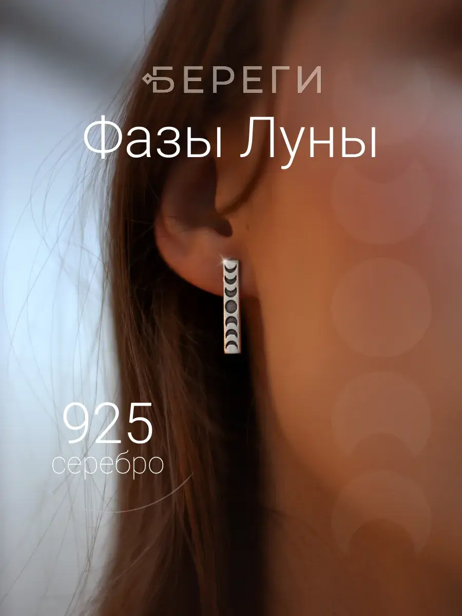 Серьги Фазы Луны прямые из серебра 925 пробы