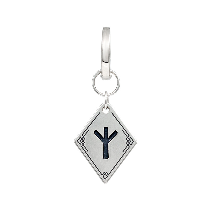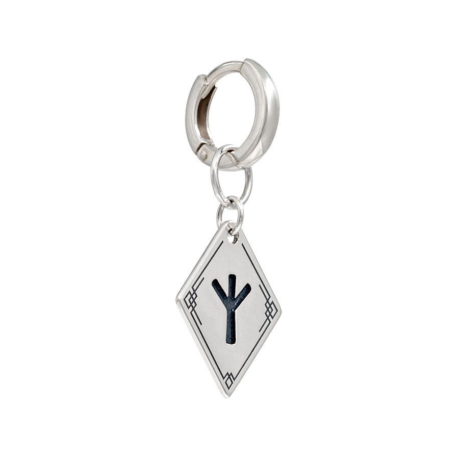 Но особенностью данной модели является изящная, съемная подвеска из серебра 925 пробы с гравировкой, изображающей древний скандинавский символ, известный как "Альгиз". Этот символ, благодаря своей графической форме, напоминает стилизованное изображение рогов лося или человеческую фигуру с поднятыми руками. Руна Альгиз символизирует могущественную защиту, покровительство и связь с высшими силами.