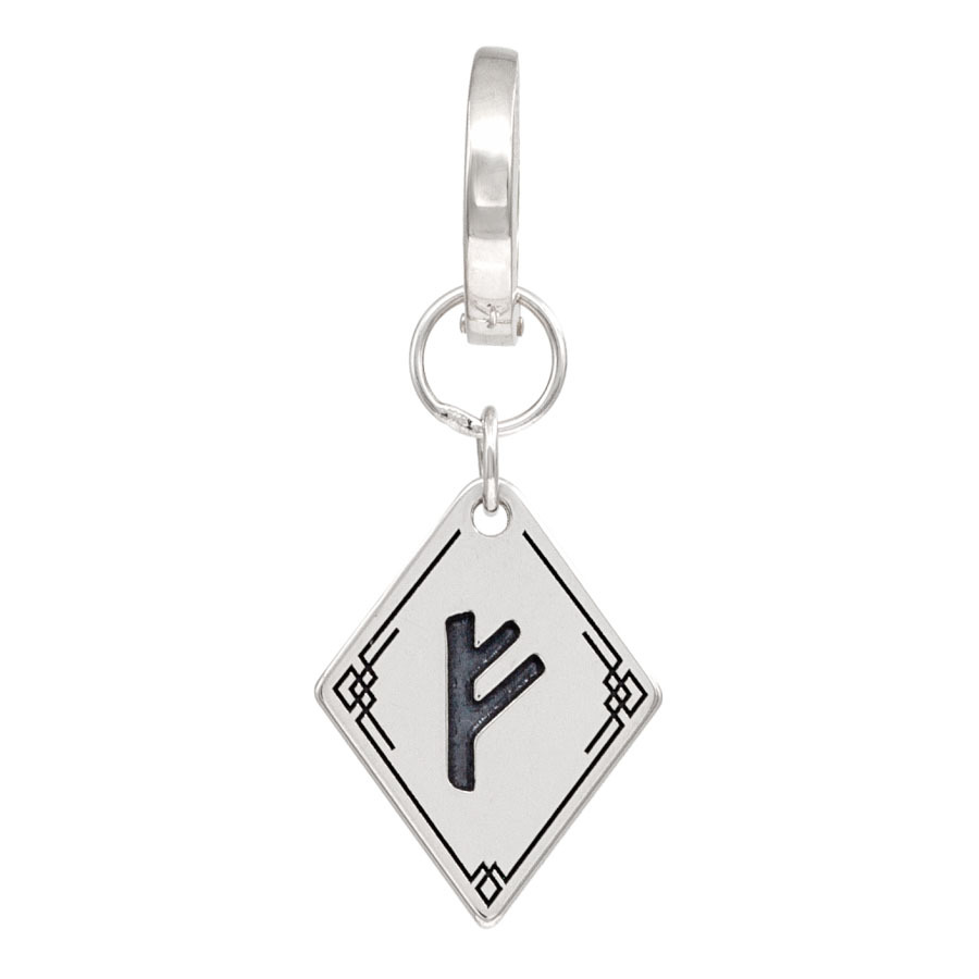 К каждому кольцу добавлена небольшая съемная подвеска, украшенная изображением руны "Феху". Этот графический элемент придает традиционной форме "Конго" уникальный, стилистически выраженный акцент. В историческом и культурном контексте руна Феху часто ассоциируется с финансовым процветанием, богатством, успехом в делах и карьерным ростом.