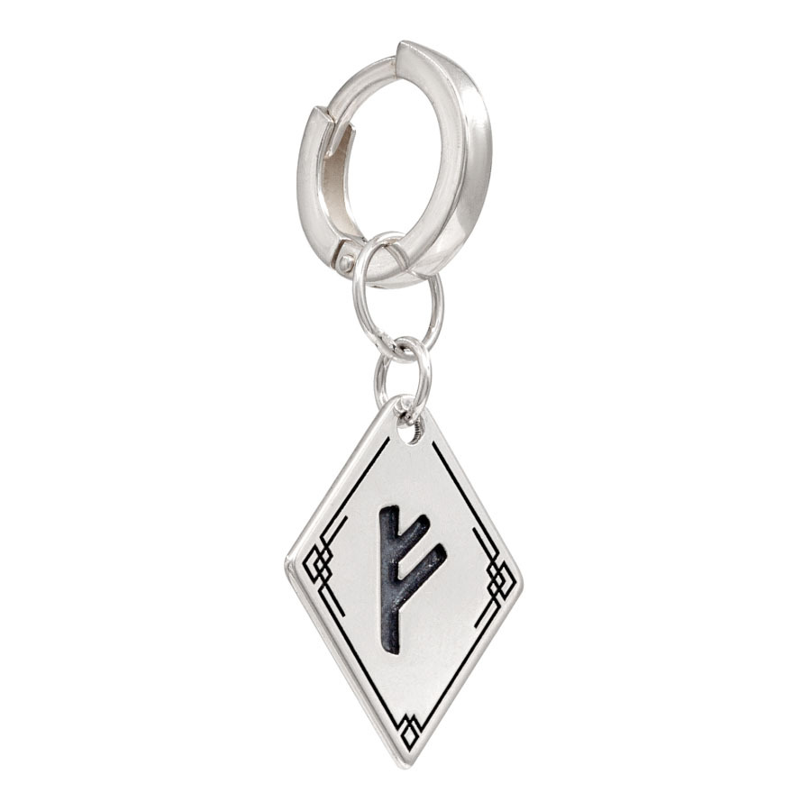 Серьги Конго 12 мм с подвеской руна Феху из серебра 925