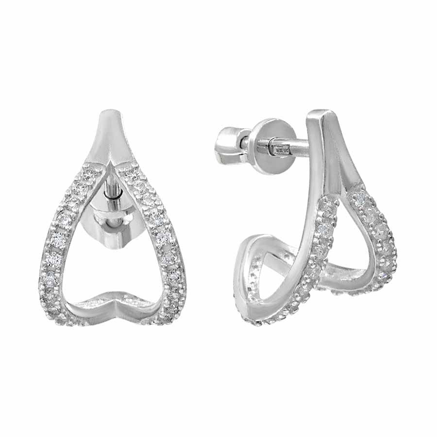 Серьги изготовлены из серебра 925 пробы и инкрустированы фианитами.