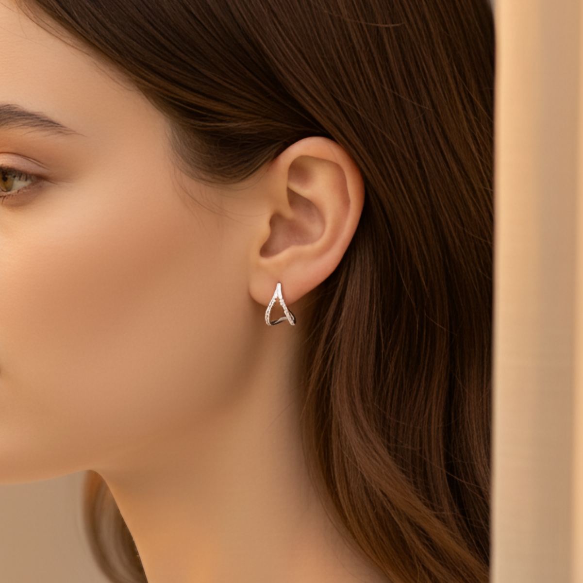 Серьги-пусеты Долька из серебра 925 пробы с фианитами