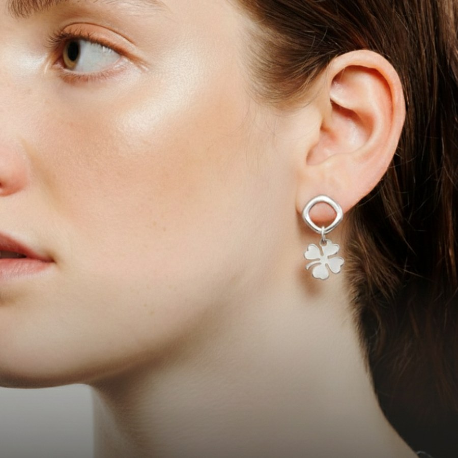 Ювелирные серьги-пусеты с подвеской Клевер из серебра 925 пробы — это изящное ювелирное украшение с глубоким символическим смыслом и актуальным минималистичным дизайном. Легкие, утонченные и визуально воздушные, они гармонично дополняют повседневные и вечерние образы, подчеркивая женственность и чувство стиля.