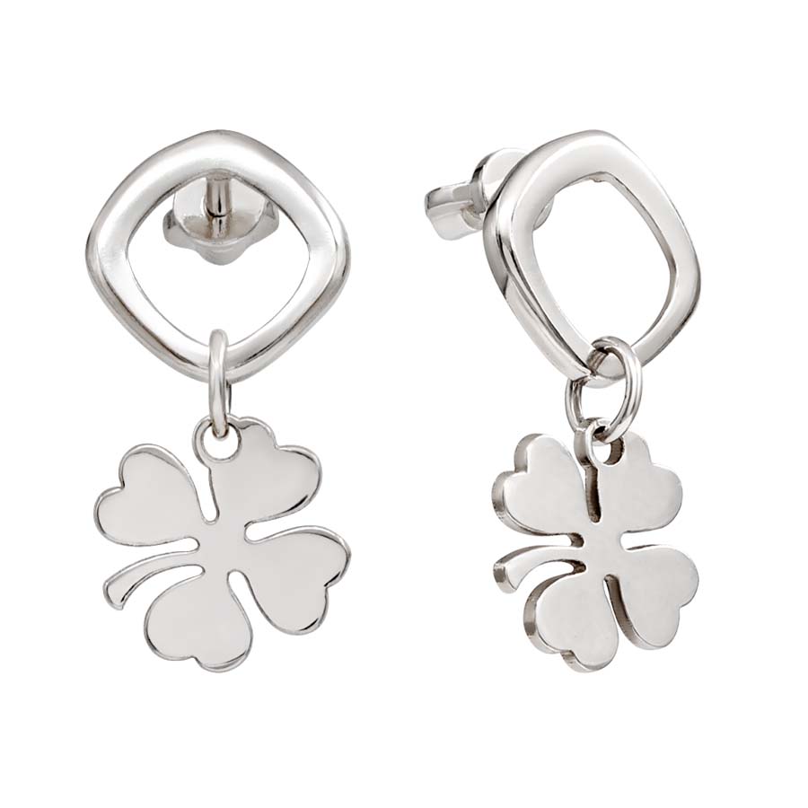 Серьги оснащены съемными подвесками. Клевер легко снимается, и пусеты можно носить как самостоятельное базовое украшение. При желании подвеску можно заменить на другую, создавая новые стилистические комбинации без покупки дополнительных серег.