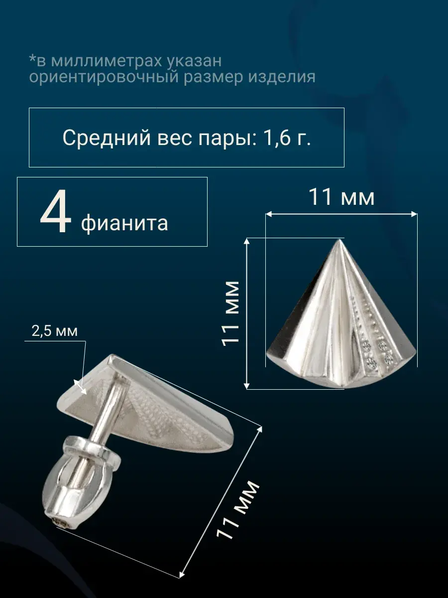 Серьги изготовлены из серебра 925 пробы и инкрустированы фианитами.