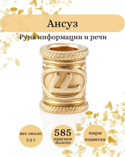 Купите руну Ансуз из золота онлайн с доставкой на дом или заберите заказ из ближайшего пункта самовывоза Beregy по всей России.
