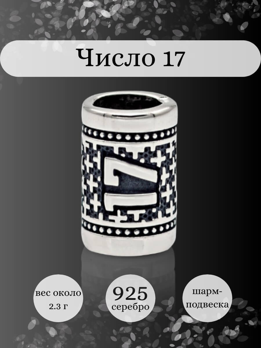 Шармы из серебра - это отличный выбор для тех, кто хочет создать стильный и элегантный образ. Вы можете купить шарм с числом 17 из серебра с бесплатной доставкой по России.