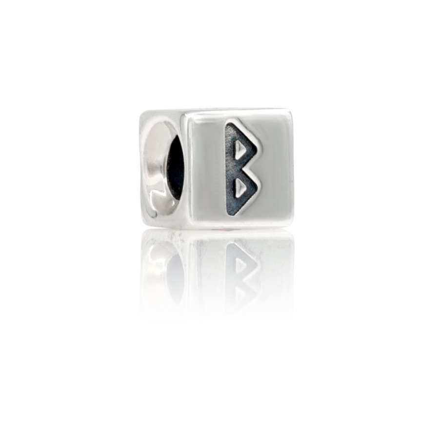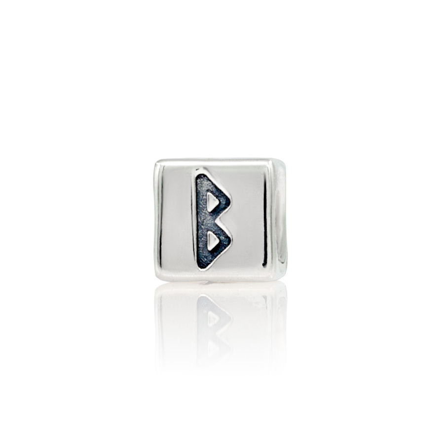 Шарм изготовлен из серебра 925 пробы. Руна Беркана ассоциировалась у северных народов с ростом и развитием. Кубическая форма подчёркивает геометричную завершённость знака, а блеск серебра добавляет элегантности.