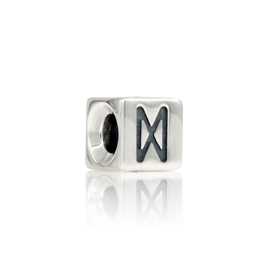 Шарм изготовлен из серебра 925 пробы с руной Дагаз, которая у древних скандинавов ассоциировалась с переходом от тьмы к свету. Кубическая форма шарма подчёркивает баланс и завершённость символа.