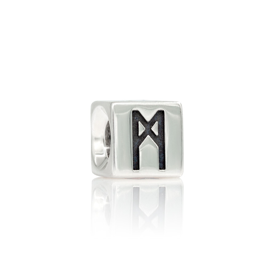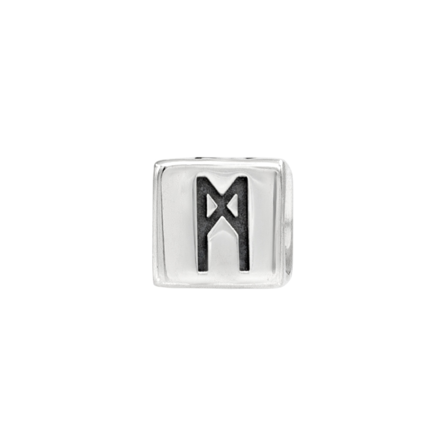 Шарм изготовлен из серебра 925 пробы с руной Манназ, символизирующей человека и общество. Симметричная форма на грани куба подчёркивает баланс, а блеск серебра придаёт премиальный вид.
