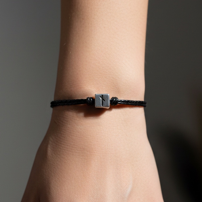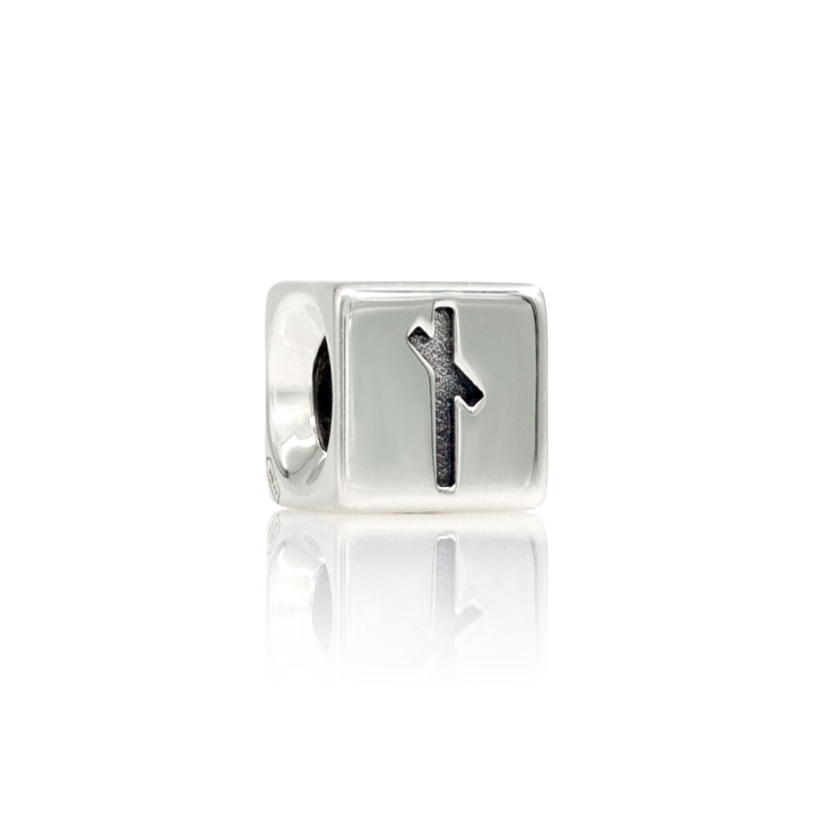Шарм выполнен из серебра 925 пробы с руной Наутиз, ассоциировавшейся у северных народов с необходимостью и преодолением препятствий. Кубическая форма создаёт ощущение устойчивости символа.