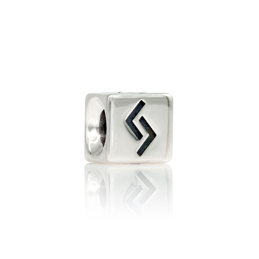 Шарм изготовлен из серебра 925 пробы с руной Йера, которая у северных народов ассоциировалась с цикличностью времени и урожаем. Закольцованная форма на грани куба выглядит гармонично, а блеск серебра подчёркивает плавность линий. Кубическая форма подчёркивает ритмичность и симметрию символа.