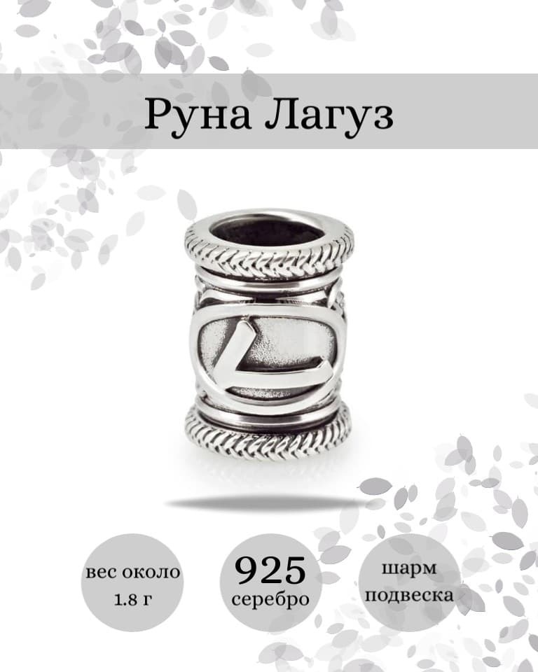 Купите шарм руну Лагуз из серебра онлайн с доставкой на дом или заберите заказ из ближайшего пункта самовывоза Beregy по всей России.