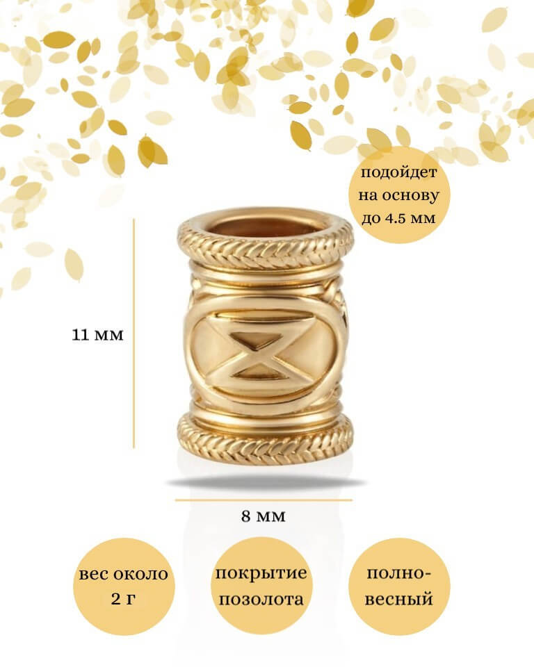 Представленный шарм Дагаз (Dagaz) изготовлен из стерлингового серебра 925 пробы и покрыт позолотой 999 пробы. Каждый, предлагаемый к покупке шарм в обязательном порядке проходит процедуру опробирования в Донской Государственной пробирной Инспекции, что гарантированно подтверждает высокое качество металла.