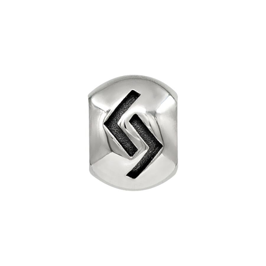 Шарм полностью изготовлен из серебра 925 пробы без дополнительного покрытия, изображение руны нанесено с помощью чернения.