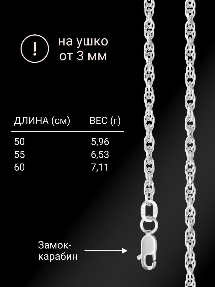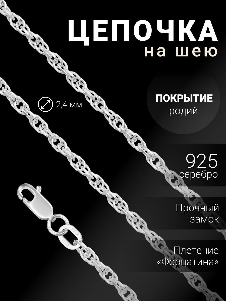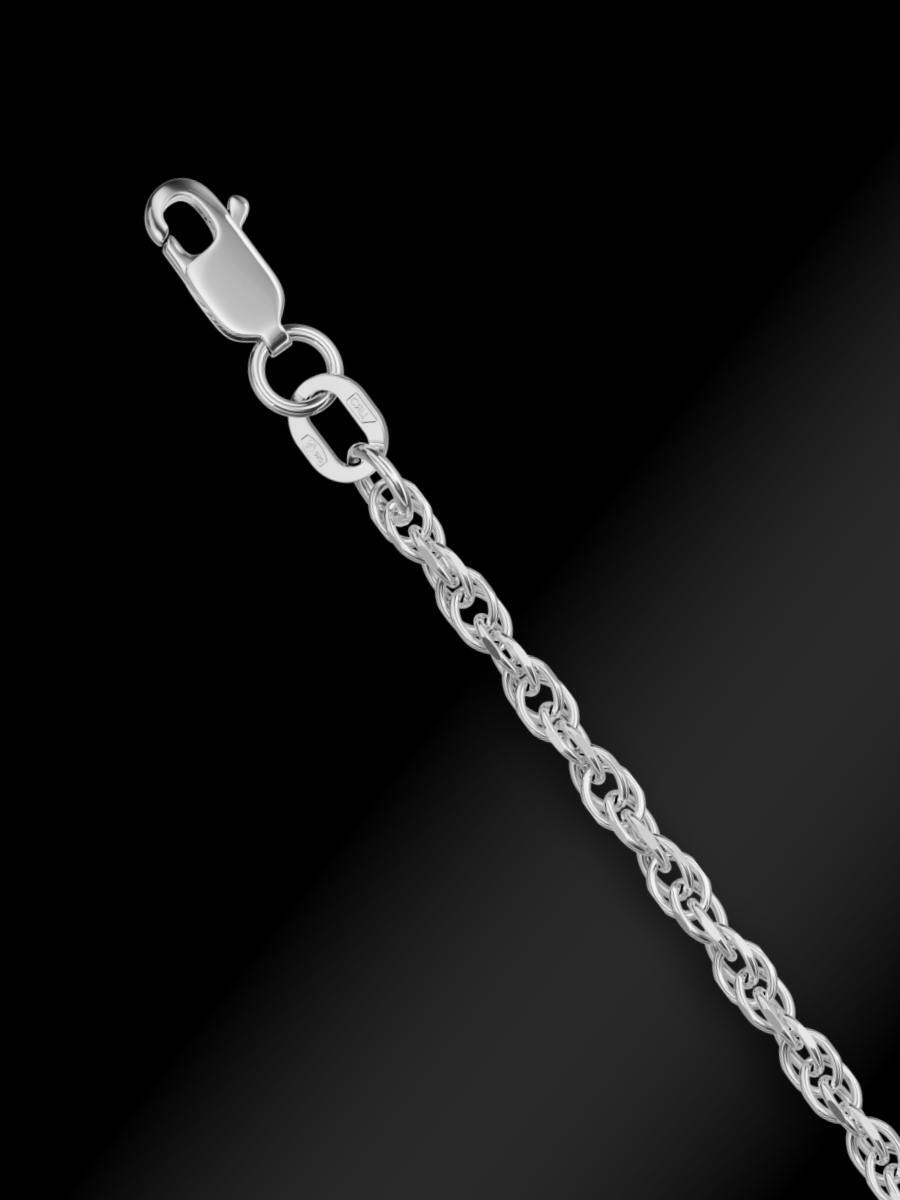 Цепь изготовлена из серебра 925 пробы с родиевым покрытием.
