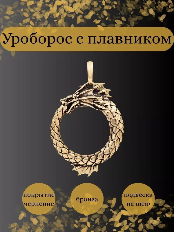 Взглянув на фото Уробороса, мы можем видеть змею или дракона, который поглощает свой хвост. Бронзовое украшение отличается от других изделий, ведь оно является воплощением жизни. Мало кто знает, что такая подвеска – это мощный оберег.