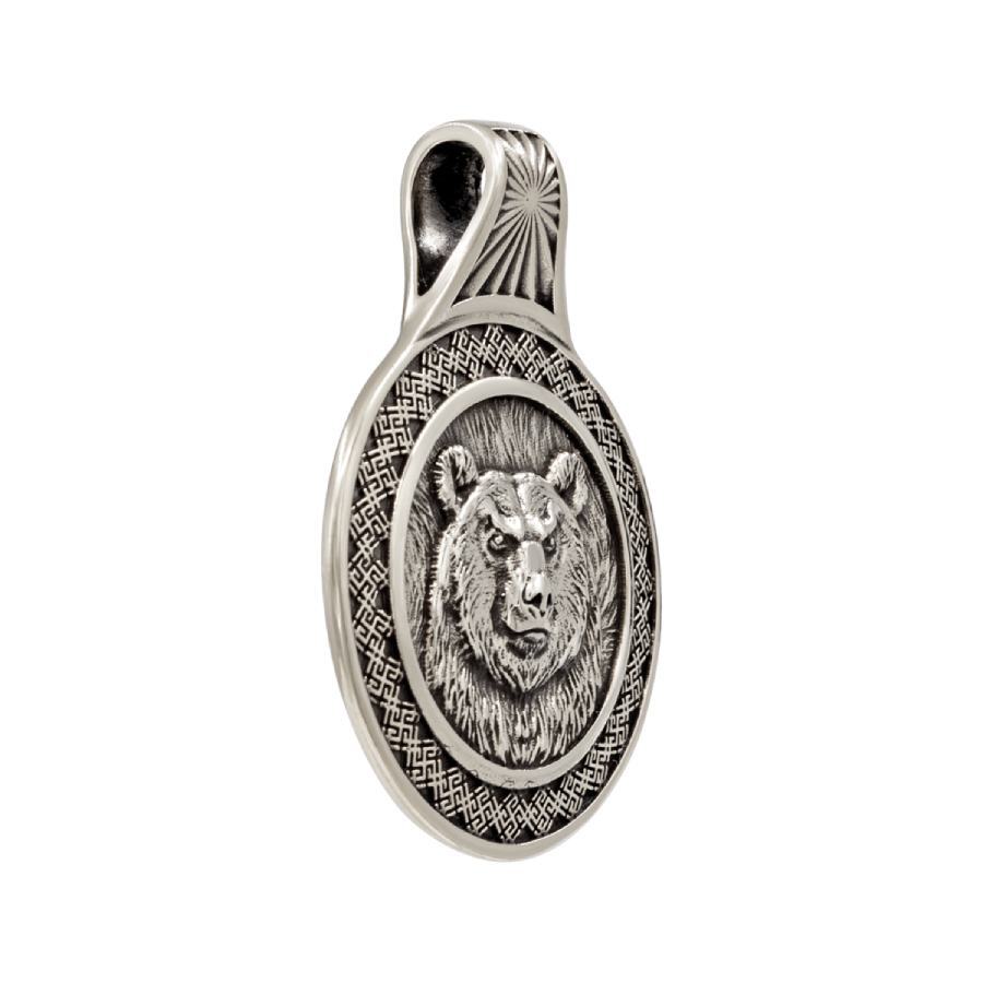 Beregy представляет вам славянский оберег из мельхиора символ Велеса с изображением медведя. Изделие отлито в мельхиоре, с обработкой типа чернения и отверстием под шнур 4 мм.