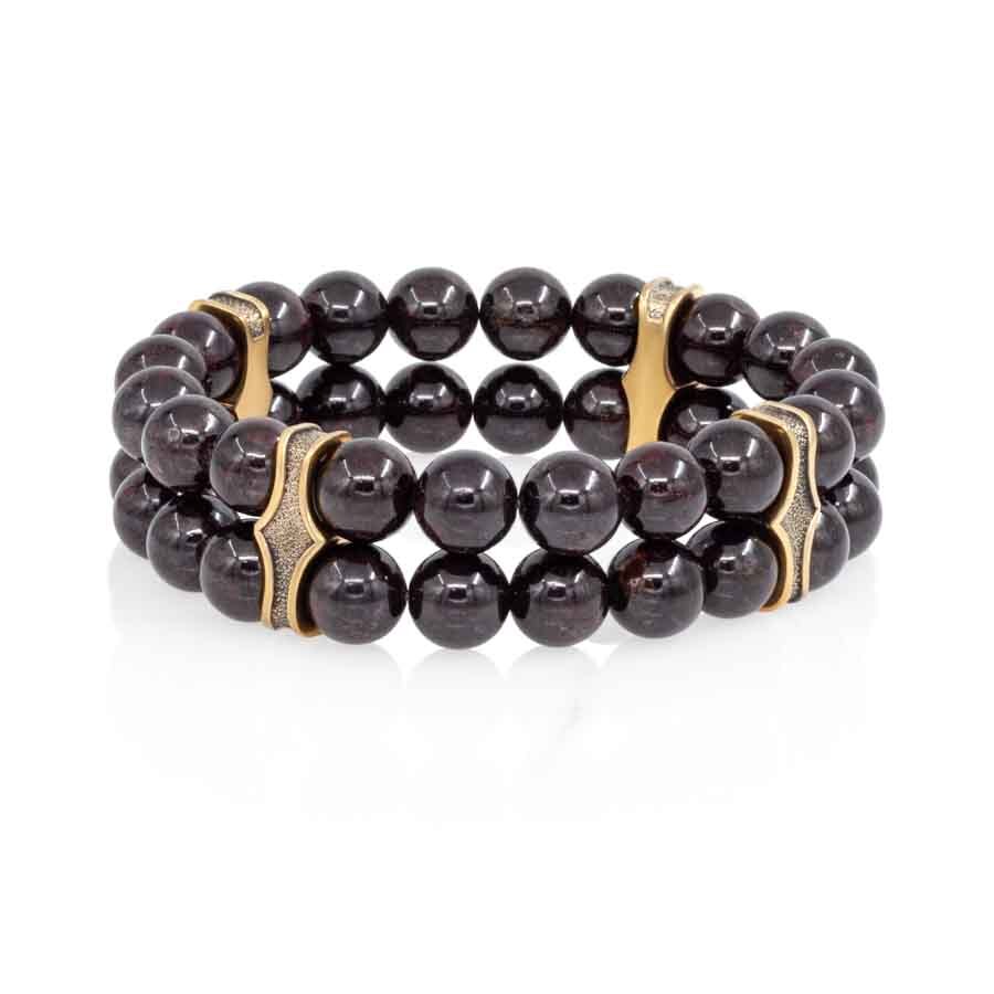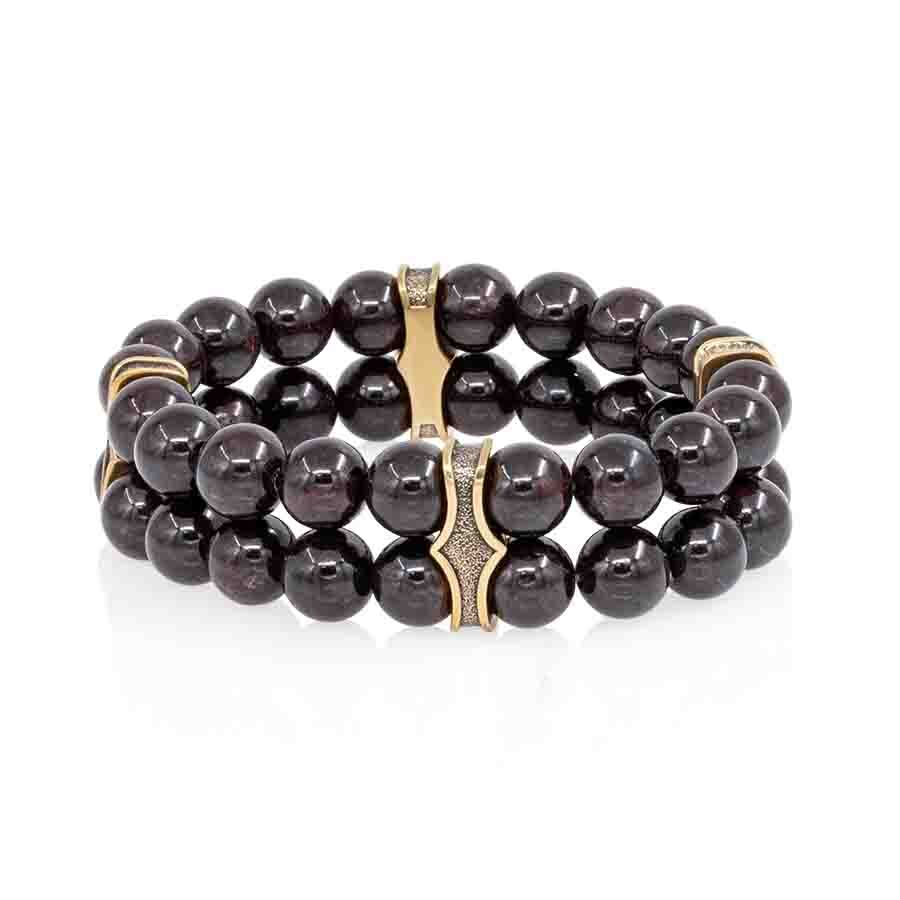 Браслет двойной с шармами из бронзы и натурального камня гранат символизирует силу, страсть и активную жизненную энергию. Гранат помогает раскрыть внутренний потенциал, привлекает успех и уверенность в действиях, а бронзовые шармы придают украшению изысканность и оригинальность.