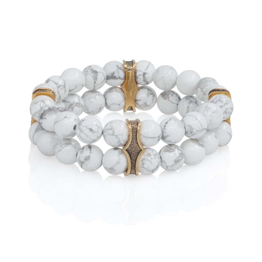 Браслет двойной с шармами из бронзы и натурального камня магнезит символизирует гармонию, спокойствие и умственную ясность. Магнезит помогает снизить стресс, усилить концентрацию и внутреннюю стабильность, а бронзовые шармы придают украшению утонченность и индивидуальность.