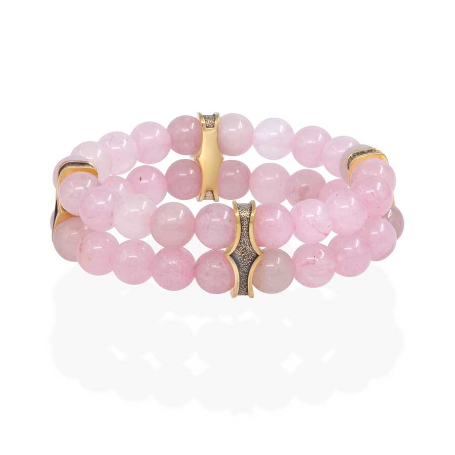 Браслет двойной с шармами из бронзы и натурального камня розового кварца символизирует гармонию, любовь и эмоциональное равновесие. Розовый кварц наполняет сердце теплом и заботой, а бронзовые шармы усиливают энергетику браслета, придавая ему уникальный характер.
